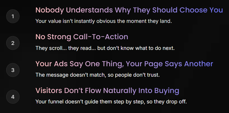 Your funnel doesn’t guide them step by step, so they drop off.